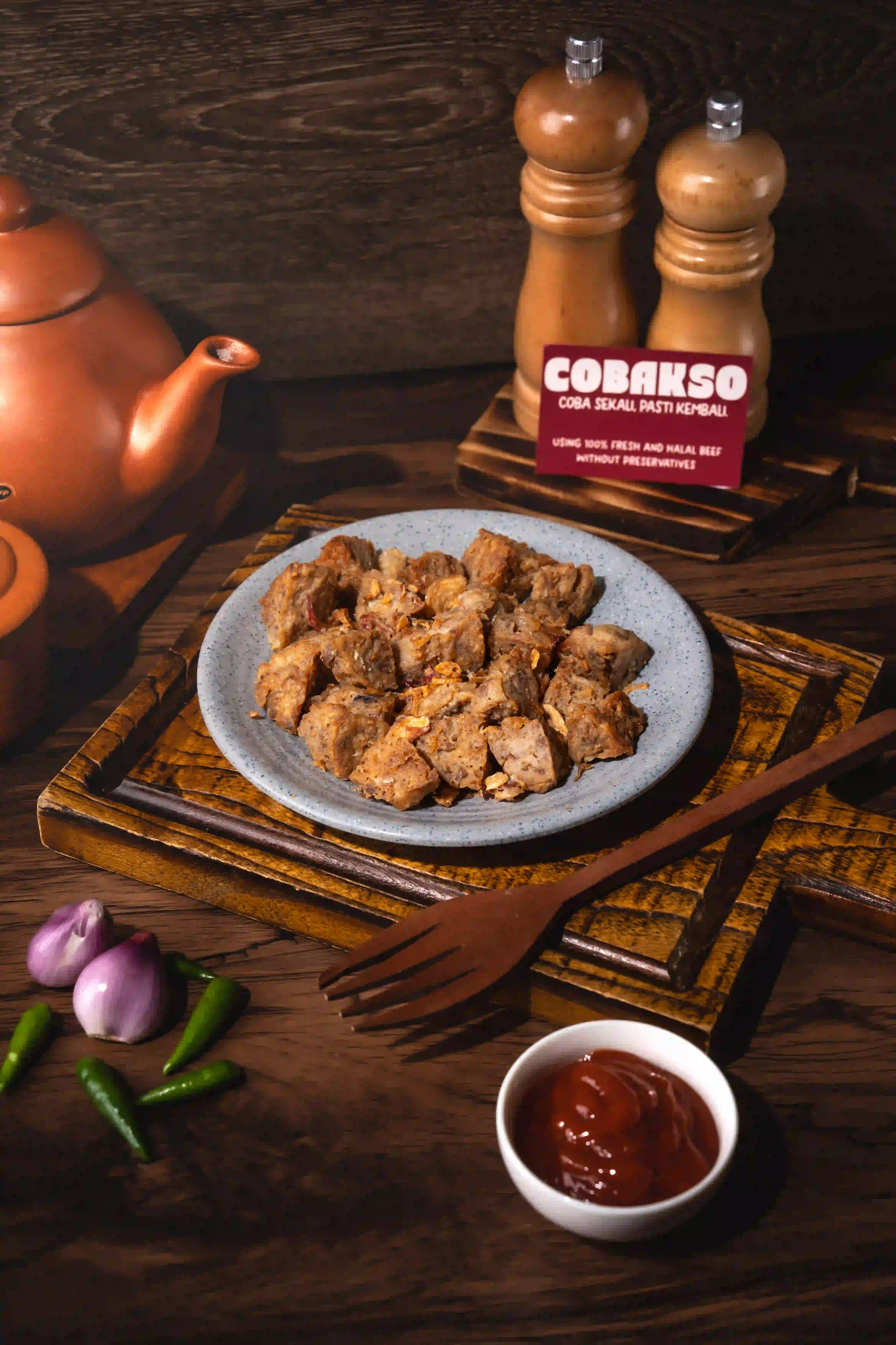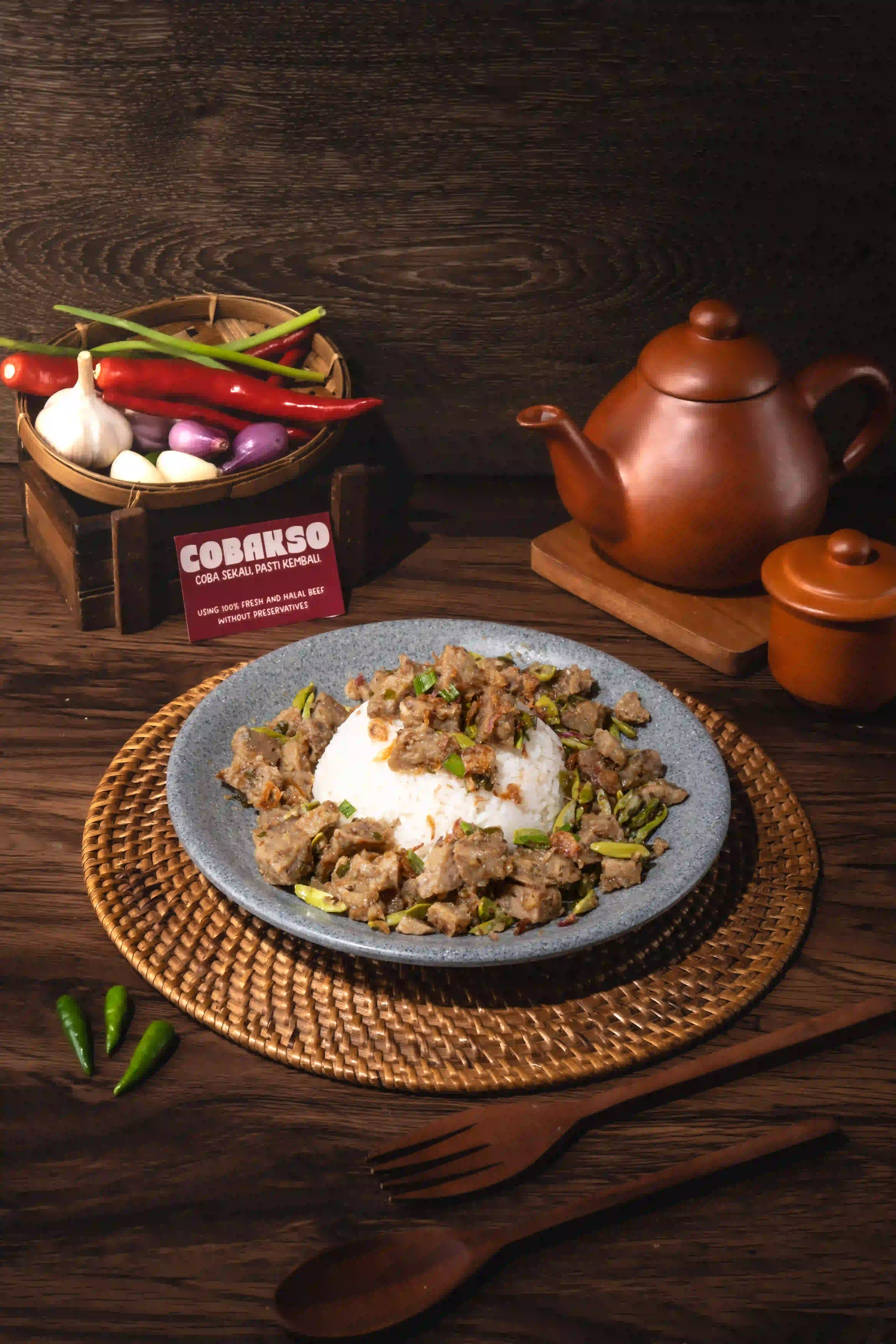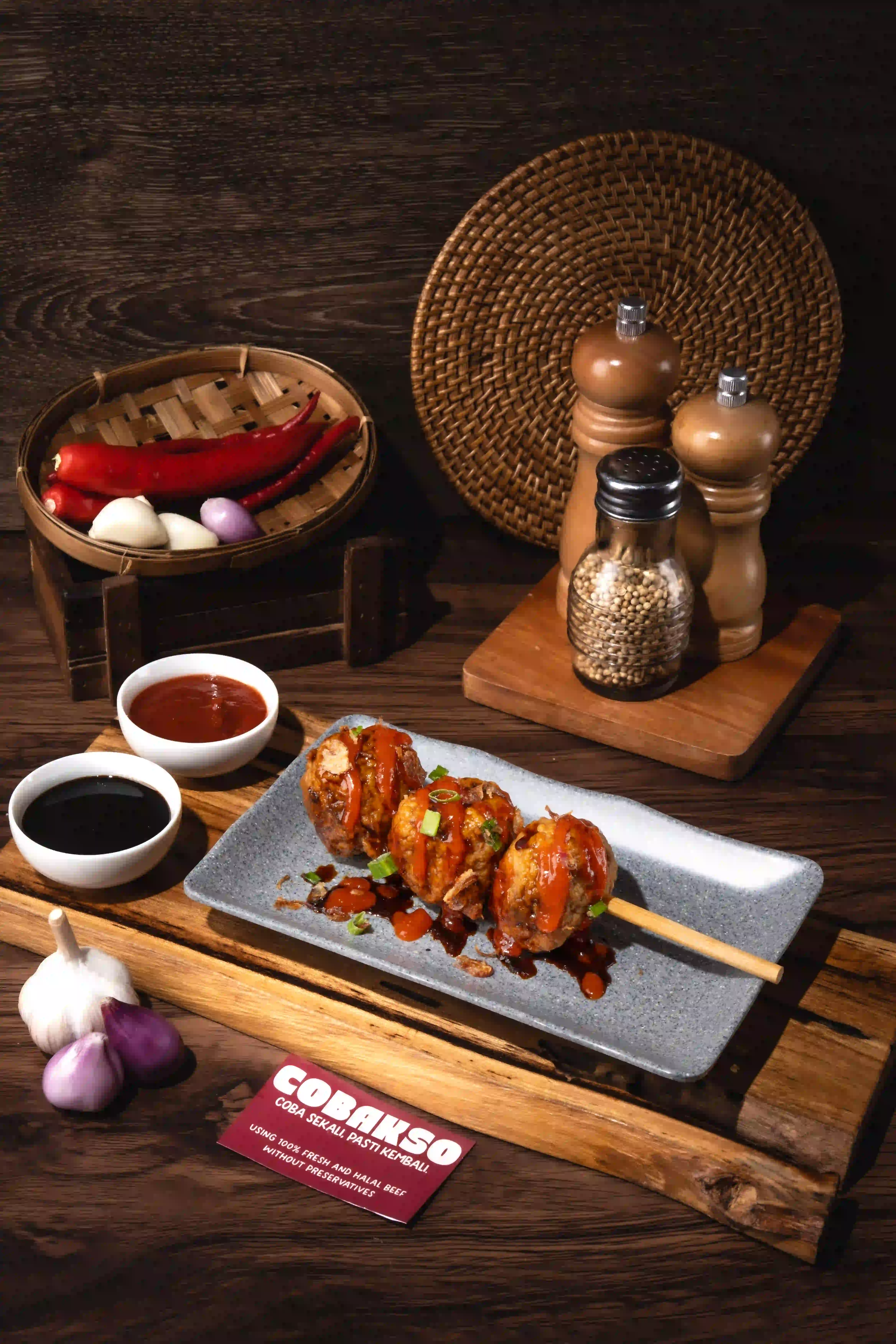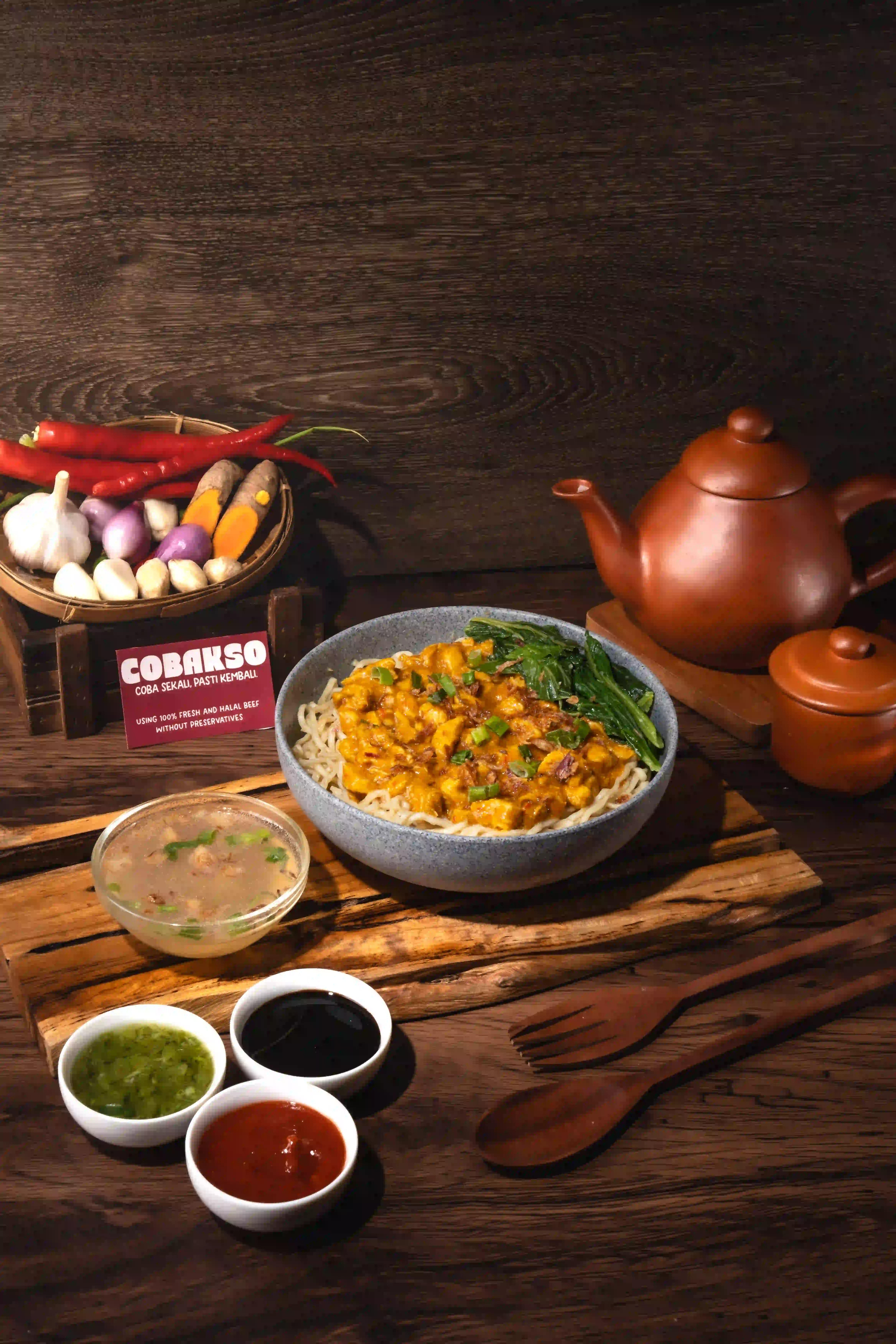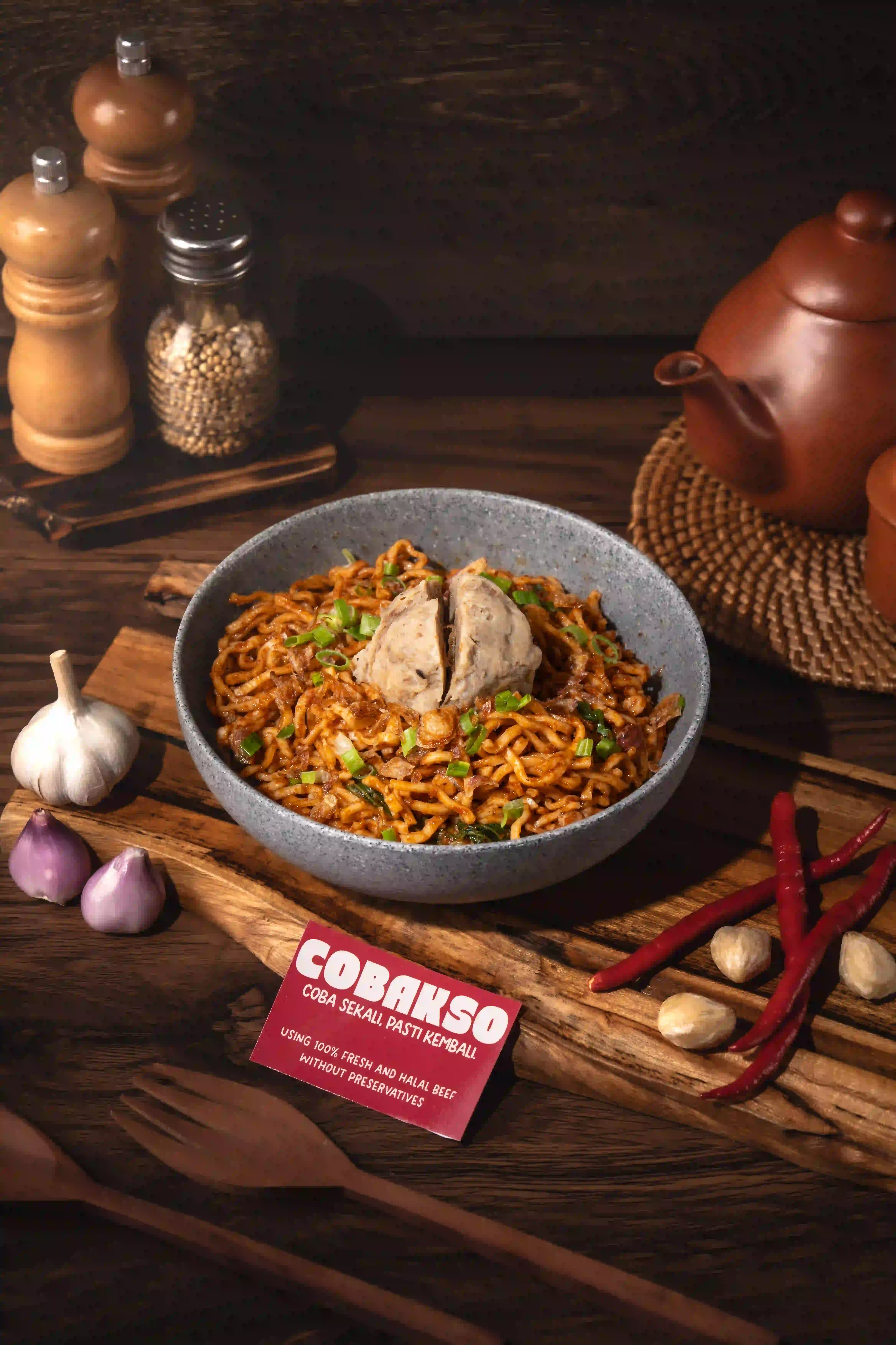 Bakso Cincang dan Bakso Kecil dalam kuah kaldu gurih, lengkap dengan mie, sawi, dan bawang. Fresh. Halal. Premium.